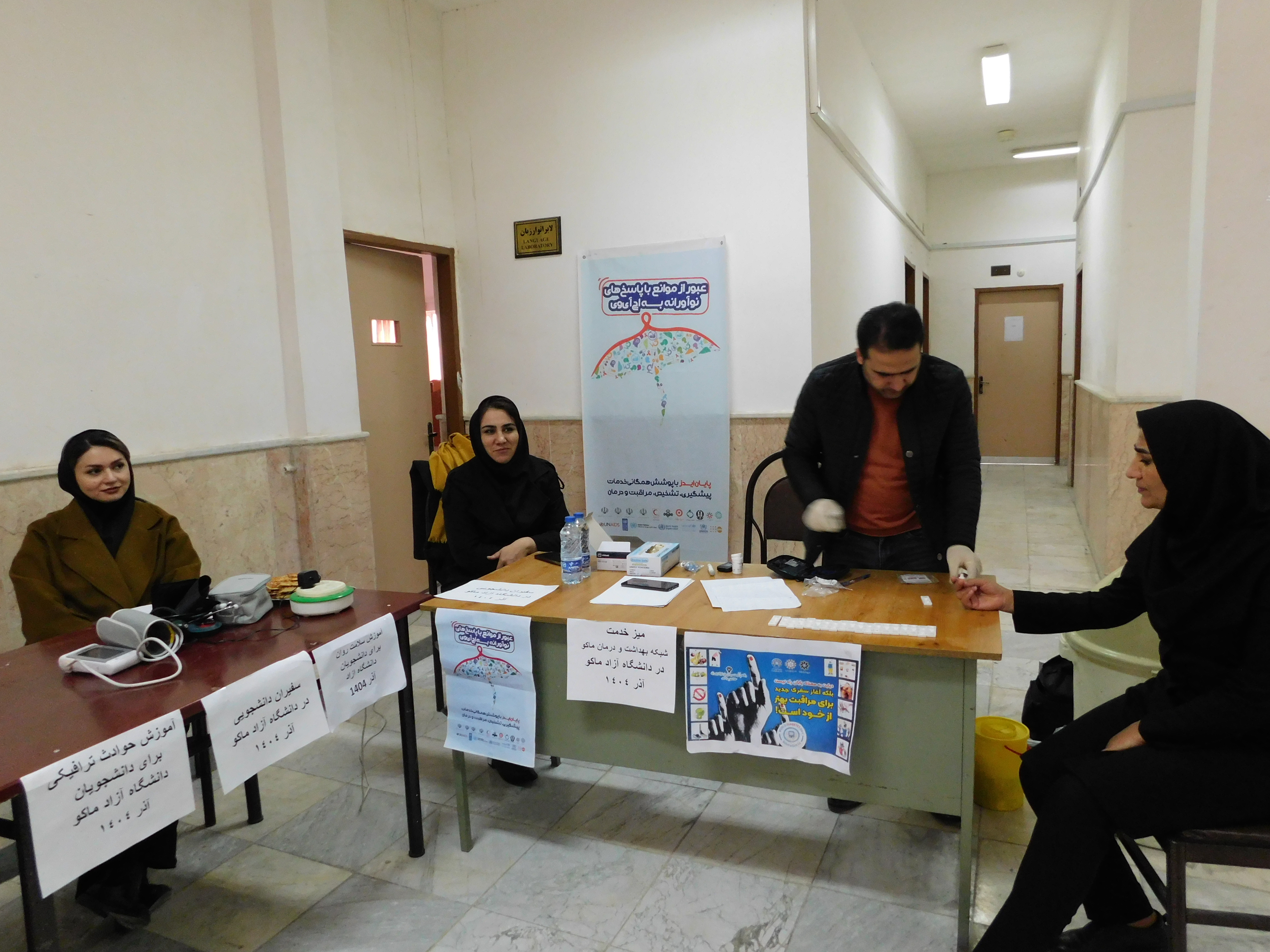 به مناسبت گرامیداشت روز دانشجو، میز خدمت با حضور کارشناسان شبکه بهداشت و درمان شهرستان در شانزدهم آذر ماه سال جاری در دانشگاه‌های آزاد اسلامی و پیام نور برگزار شد. در این میز خدمت، موضوعات متنوعی شامل سبک زندگی سالم، حوادث ترافیکی، سفیر دانشجویی، ایدز، دیابت، مصرف مکمل ویتامین د3 ، سلامت روان و پویش تغذیه با شعار «نان و سلامت» به دانشجویان ارائه گردید. در این برنامه، علاوه بر آموزش و مشاوره، ارزیابی سلامت دانشجویان و کارکنان نیز انجام شد. این ارزیابی شامل تست اچ‌آی‌وی، تست دیابت و اندازه‌گیری قد و وزن بود تا وضعیت سلامت افراد مشخص شده و راهنمایی‌های لازم برای پیشگیری و ارتقای سلامت ارائه شود. کارشناسان حاضر با هدف ارتقای سطح آگاهی دانشجویان نسبت به سلامت فردی و اجتماعی، پاسخگوی سوالات و مشکلات دانشجویان در حوزه‌های مذکور بودند. همچنین، با توزیع بروشورهای آموزشی و ارائه مشاوره‌های فردی، دانشجویان با روش‌های پیشگیری از بیماری‌ها و اهمیت رعایت سبک زندگی سالم آشنا شدند. این برنامه با استقبال گسترده دانشجویان همراه بود و تأکید شد که استمرار چنین فعالیت‌هایی می‌تواند نقش مهمی در ارتقای سلامت و کاهش آسیب‌های فردی و اجتماعی ایفا نماید.