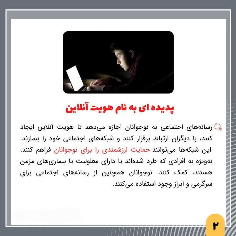 درصد نوجوانان همیشه آنلاین هستند. ����پدیده‌ای به نام هویت آنلاین ����آسیب‌های رسانه‌های اجتماعی ����اجازه ندهید کنترل زندگیتان از دست برود.