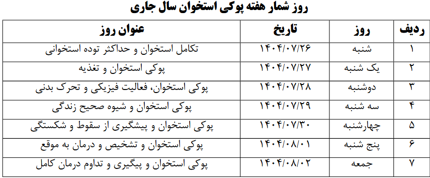 پویش همگانی پوکی استخوان از 26 مهر تا 2 آبان ماه